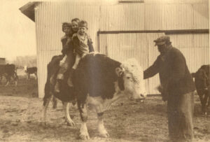 During Dusty Vail’s time the Empire Ranch ran only Hereford cattle. She had fond memories of a special bull. “Jerry Bull was our pet, we just loved him. He was sweet and mild tempered, and he just wandered around. His nemesis was this other great big old bull that used to hook him and be real mean to him. So when the time of dehorning arrived, Jerry Bull didn’t have any horns, so he was O.K. But this other bull had to be dehorned, and I’m telling you, he was frightful! When they dehorned him, he went absolutely berserk. I mean, you talk about a mad bull, he was! And everybody stayed way up there out of the way. Well he finally got out of the corral up there, and he saw Jerry Bull in the distance, so he went after Jerry Bull. And it was wonderful! He took a swipe at him with his horns, and he didn’t have any horns! So Jerry Bull just butted him hard. He beat him up so that poor bull didn’t come in for water for three days. We loved that.” [Dusty Vail Ingram oral history, 1993]