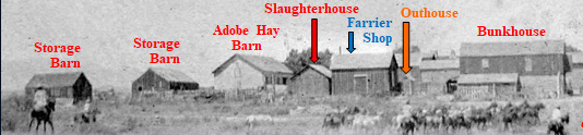 Except for the Farrier’s Shop, the fire destroyed all of the wooden structures on the east side of Headquarters including the Bunkhouse/Carpenter’s Shop, Slaughterhouse, and two storage barns. None of these were rebuilt. The fire also severely damaged the Cooks Wing, Stable and Adobe Hay Barn. All livestock were outside of the working area in pastures.