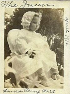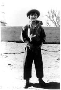 Laura Perry Vail was born on December 2, 1914 in Tucson. Named after her mother, she was called Dusty. She related the origin of her nickname: : “Well, the story I heard was that dad said that for the first three days after I was born, every time he came in to look at me they were giving me something to drink. And he automatically said, ‘My she must have a dusty throat.’ He was thinking of driving cattle, you know. So the name stuck from then on. He and mother started calling me Dusty. That’s the way it happened.” [Dusty Vail by Glenda Bonin, 2001]