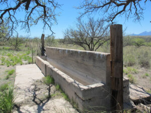 Around 1915 by Banning Vail designed and constructed several unique two-sided eleven by twelve-foot rectangular formed concrete tanks that were used for watering livestock in adjacent pastures/corrals. The side walls are six inches thick and are 2 feet above grade at their highest point.