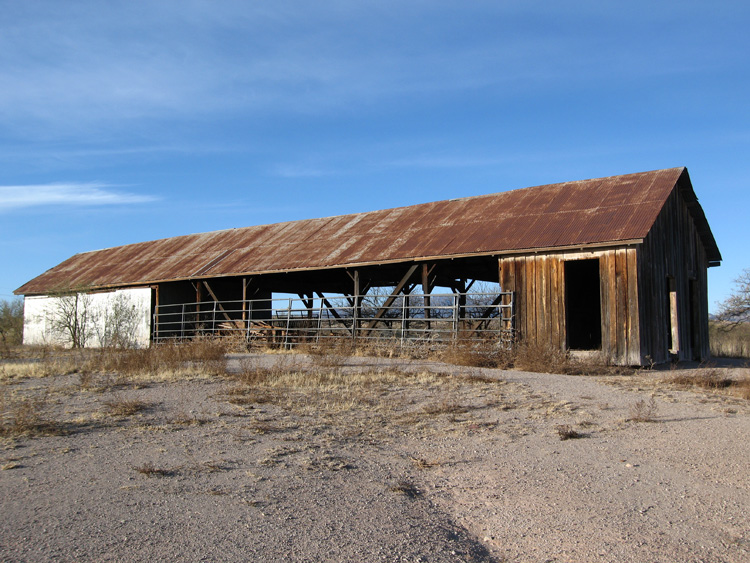 The upper or shipping corrals are located in the northeast corner of the Empire Ranch Headquarters area. Dusty Vail Ingram noted: “Well, our father built that. He devised that whole system. And so what you’d do is, you’d stand up on the top of that chute, you see, and as you run the cattle through, then you could separate them very easily. Some you could put in this pen over here, some in that pen over there, depending on what you wanted to do. There were quite a few pens there, so that you could take care of a large number of cattle. And the fences had a little sort of walkway on top. There was a board about that wide on the top, so that you could walk around on the top of the fence and do things. And I remember a couple of years before we left [1928], that they started dehorning. They’d never done dehorning before.” [Dusty Vail Ingram oral history, 1993]