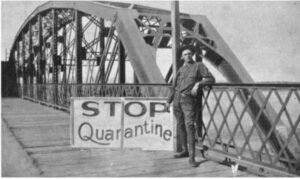 In February 1924 an outbreak of hoof and mouth disease in several northern California counties led to strict quarantine actions to protect the Arizona beef industry. The quarantine did not just affect the transport of beef across the state border but all east bound vehicular traffic from California to Arizona was prohibited at first. This latter restriction was replaced by a disinfection requirement for auto and train passengers which lasted until July. The only way to control the disease at the time was to kill all affected animals. Hoof and mouth persisted in California until 1929 but Arizona was successful in preventing its spread in the state.