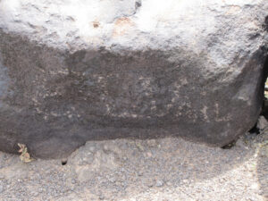 Ned Vail’s signature on a rock at Painted Rock Petroglyph Site, Arizona. In addition to hundreds of symbolic and artistic rock etchings, or “petroglyphs,” produced centuries ago by prehistoric peoples, there are also inscriptions made by people who passed through during historic times. Courtesy of Doug Hocking