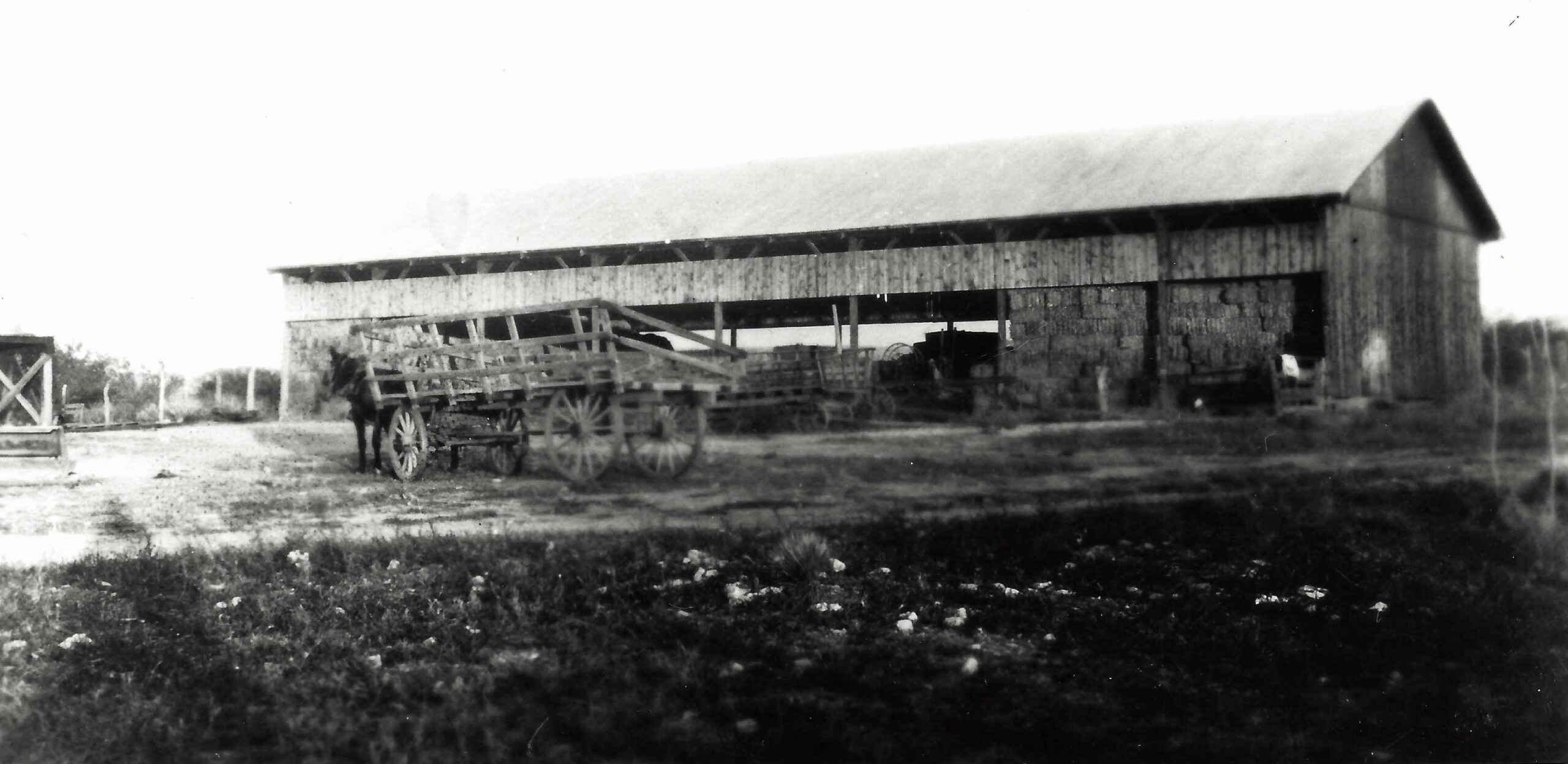 300 tons of alfalfa hay grown in the agricultural fields at the Empire Ranch in the South Barn, at the Empire Ranch, 1924. ERF archives A301-001