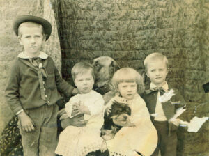 The Vail family numbered 8 in 1895: Walter, Margaret, 5 sons and one daughter. Up to that point the children had been home-schooled at the Empire Ranch by various English governesses. “McGuffey’s readers and Hilliard’s readers with their stress on elocution and formal discourse were mastered, and after the Sunday Bible readings given by Margaret Vail. The children were free to ride about the countryside on their ponies. This idyllic life was permanently interrupted when Mahlon shied a boot at an English governess and she left in a huff.” [Christine Shirley manuscript, 1977]