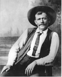 Very soon after I was standing on one side of the chuck wagon, the elder brother was leaning against the back and his brother near the front wheel on the opposite side of the wagon from me. Suddenly I heard a scuffle and when I looked up I saw the sheriff and another man grab the elder boy and take his gun. His deputy and assistant were holding his brother on the other side of the wagon. They had quite a struggle and young Fox pulled away from them, ran around the wagon past me with the deputy in pursuit. He ran about a hundred yards up a sandy gulch and the deputy was quite close to the boy when he raised his gun and fired. Young Fox dropped and never moved again. I was close behind the deputy as I had followed them. When the latter turned toward me with his six-shooter still smoking and he was wiping it with his handkerchief. “I hated to do it,” he said, “but you have to sometimes.”
