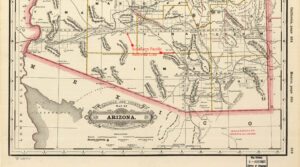 We grazed our cattle and horses at Gila Bend for several days and gave them a chance to rest. Turner or I generally did some scouting ahead to find a good watering place for our cattle and the next day’s camp. We found a trail along the south side of the river, about 30 feet above it, with a steep mountain on the other side and only wide enough for a man on horseback to pass. We followed it for about a mile and it brought us out on the Oatman Flat., a nice piece of land named for the Oatman family, the members of which were killed there by the Apaches in 1850. The way of reaching this place was over a very rocky mountain road and much longer. We decide to drive the cattle over the trail by the river. The cattle were started in that direction with a rider leading them as usual. As soon as we had a few lead steers on the narrow trail the others followed like sheep and all reached Oatman safely. So many cattle walking single file was an unusual sight. The wagon had to go by the longer road. At the Oatman Flat we met the Jourdan family, with whom we were acquainted. Turner and I spent the evening very pleasantly at their house. The Jourdans were doing some farming and also had cattle. Gila Bend is about half way between Tucson to Yuma, and from what I saw of the Gila Valley I did not think much of it as a cattle country. We had some trouble with quicksand when watering cattle in the river. If a steer got stuck in the sand the only way to get him out was to wade in and pull out one leg at a time and then tramp the sand around that leg (this gets the water out of the sand which holds it in suspension). When all the legs were free we would turn the animal on its side and haul it to the bank with our reatas.