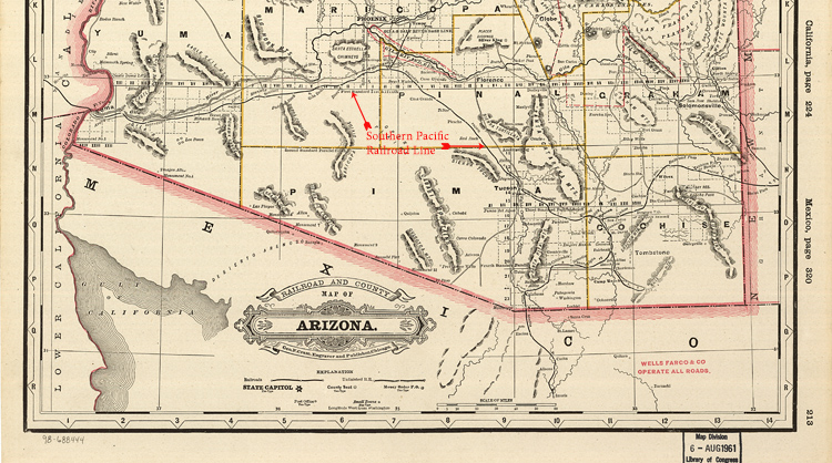 I forgot to say how our Chinese cook left for Pantano on the train soon after we arrived in Yuma. He said if he crossed the river he would never come back again. The day before he left he bought a large Colorado salmon alive from a Yuma Indian who had just caught it. John took the fish, which was over two foot long, up to Mr. Gandolfo’s store and got permission to put it in a large galvanized water tank in the back yard. John said: “I am going to take that fish back to the Empire Ranch for Mrs. Vail.”