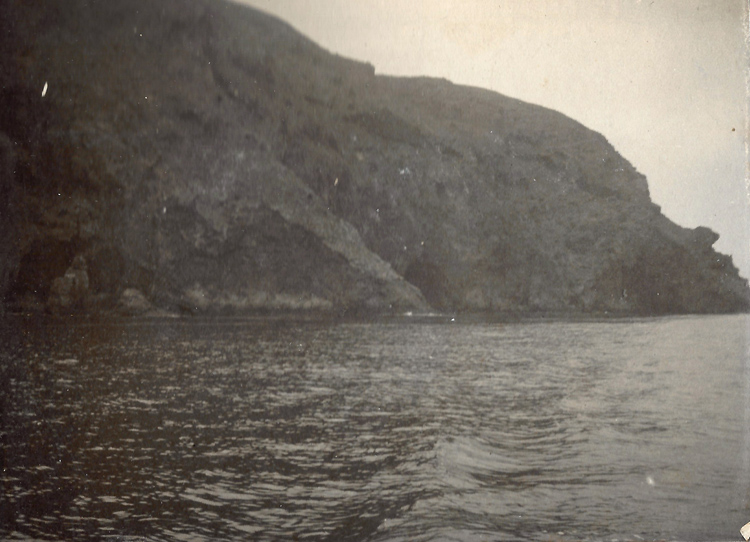 There are large barns, a large two story Ranch House, shearing sheds and dipping vats for sheep and cattle, a wharf and boat house with a life boat and a two story cottage furnished comfortably that made us think of Cousin Kate’s house in Plainfield. It even had a Bible and some old fashion books in it. There are beautiful views on the island and of the sea. Santa Cruz Island is only 6 or 8 miles East and looks close. Santa Rosa is a very windy place and so cool that we had to dress warm and a fire was comfortable at night (in August) but there is not much frost in Winter. Banning had a fine time hunting foxes and digging for Indian remains and relics and went home with a sack of bones, sculls and some stone implements which he divided with Professor Willard from Tombstone.”