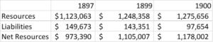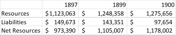 Three Statements of Resources & Liabilities for Vail Gates provide a view of the financial health of the corporation at the end of the 19th century.