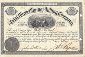 To obtain capital to develop the Total Wreck it was necessary to attract investors. Nathan Vail was instrumental in the incorporation in the New York State of the Total Wreck Mining and Milling Company. They were successful in obtaining investors for a little less than 50% of the stock. The Vails maintained majority ownership of the stock.