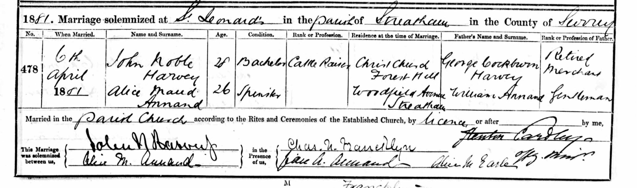 In 1881 Walter and John Harvey decided to marry. Harvey traveled to England and on April 6, 1881 married 26-year-old Alice Maud Annand. The newlyweds arrived by ship in New York on May 12, 1881, and probably arrived in Arizona by train.