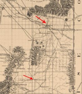 These initial legal actions, filed in December of 1880, precipitated rapid changes in both ownership and activity at the Total Wreck. In the course of the litigation, Dillon found that he could not meet his share of the legal expenses. He therefore deeded one-third share in the Total Wreck to their attorney Benjamin Morgan “in consideration of legal services,” and two months later sold another one-third of his share to Nathan Vail’s wife Anna. With Anna Vail as part—owner, Nathan Vail assumed a major role in managing the Total Wreck.” All the lawsuits were eventually dismissed. [Source: History of the Empire Ranch by Gregory Paul Dowell. Master’s Thesis, University of Arizona, 1978.]