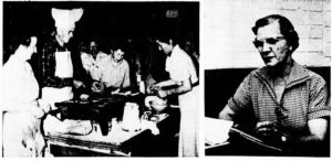 Elgin Community Club members in the Fairground kitchen (r); Mary Boice (l), 1958. Arizona Daily Star photo..