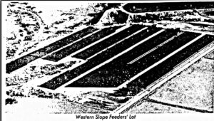 Aerial photo of Western Slope Feeder’s Lot, 1972. Courtesy of The Daily Sentinel, Grand Junction, CO.