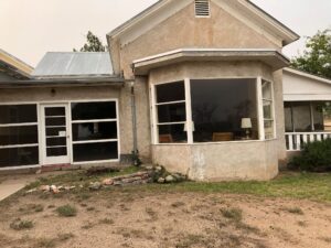 When Bob and Miriam Boice moved to the Empire Ranch after their marriage, they first lived in the Children’s Addition section of the Empire Ranch House while their own home was made ready. A surplus one-bedroom house from Fort Huachuca was purchased and moved by truck to the Empire Ranch. The house was placed across the drive to the west of the main Ranch House. Elgin rancher Stone Collie fixed the building, and it was known as Bob and Miriam’s “Casita.”