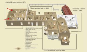 Herbert Hislop probably used Room 1 or Room 3 as his quarters. Walter Vail occupied the other room of the original four-room structure build ca. 1871.