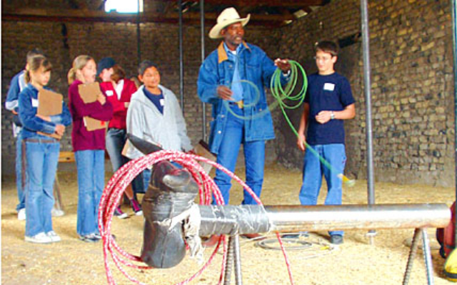 From the moment the students arrive at the Empire Ranch they are kept busy learning about ranch tools,  horses and wagons, adobe brick making, roping, rawhide (reata) braiding, and dutch oven cooking. The traditional ranch barbeque lunch prepared by ERF volunteers is a special treat for instructors and students alike.